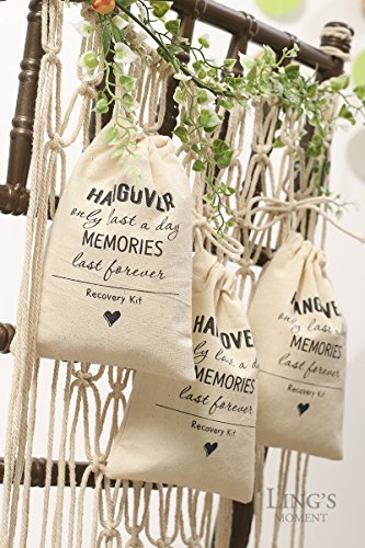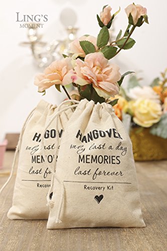Ling's moment 4x6 inch 10pcs Bachelorette Party Hangover Kit Favor Bag Wedding Party Cotton Muslin Drawstring Favor Bag