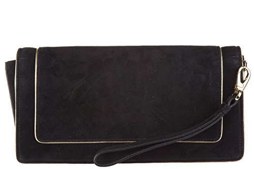 -. Title : Salvatore women's suede clutch handbag bag purse camy black