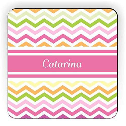Rikki Knight "Catarina" Pink Chevron Name Design Square Fridge Magnet