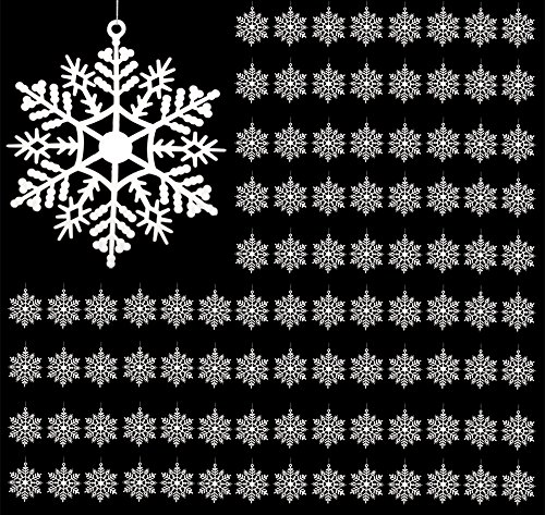 -. Feature : SNOWFLAKE DECORATIONS. Bulk set of white snowflake ornaments. Pack of 96 ornaments will be a great addition to your Christmas decorations this year. These are a small, traditional looking snowflake that when paired with your bigger plastic snowflakes on the tree, it will add depth and drama to your holiday decor. / WHITE CHRISTMAS ORNAMENTS. Snowflake are the obvious white decorations of the season. Hang these right along side of your ball or keepsake ornaments. Add this to a theme filled Christmas tree or hang them in your wreaths or garlands. / PLASTIC SNOWFLAKES. Awesome size snowflake to use for your Christmas DIY projects or holiday crafts. String them together and make SNOWFLAKE GARLANDS to hang from your banisters, mantels, decorate your holiday party with or use as snowflake centerpieces. / MINI SNOWFLAKES WITH STRING. These beautiful snowflake ornaments come ready to hang because the silver cord is already attached to each one. They are a nice size for a mini ornament display, hanging in your kitchen window or decorate the top of your christmas presents this year. / SHATTERPROOF. These are made of an unbreakable plastic. SET OF 96 MINI SNOWFLAKES (3 INCH). Add more then 1 set to your cart for a complete winter themed CHRISTMAS TREE