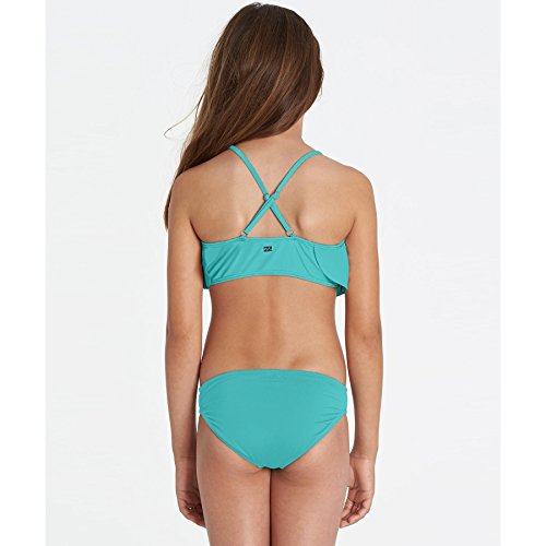 Sol searcher flutter top with crisscross at center back, adjustable straps and strappy side pant.