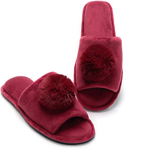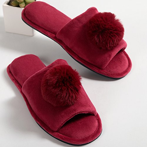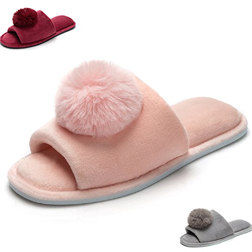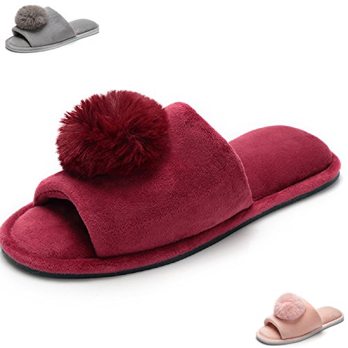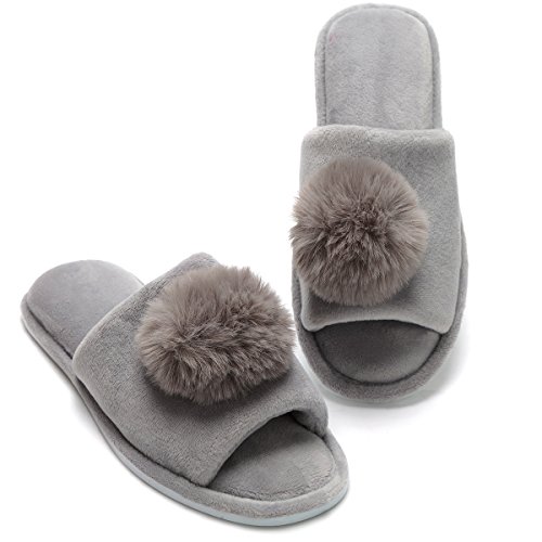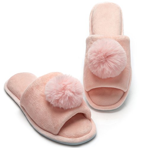 Women's Coral Velvet Soft Open Toe House Indoor Slippers Spa Slide Slipper