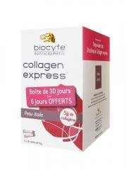 -. Binding : Health and Beauty -. Brand : Biocyte -. EAN : 3401526495498 -. Feature : Biocyte Collagen Express 30 x 6g contains the equivalent of 3 boxes of Collagen Express for a cure of 30 days including 6 free. / With years, the production of collagen slows down into the skin and wrinkles appear. A collagen intake thus contributes to slow down skin-ageing. / Biocyte Collagen Express slows down the appearance of fine lines and prevents the deep wrinkles. / This food supplement is a powder to rehydrate. The dosage of collagen is important: each stick contains 5 g of it. Perfectly digested, this drink is the attack phase of your anti-wrinkles program. It improves the suppleness and the density of the skin, in order to reduce existing fine lines and to prevent the appearance of deep wrinkles. / Peach flavour. -. IsAdultProduct : 0 -. Label : Biocyte -. Manufacturer : Biocyte -. Model : wz-3401526495498 -. MPN : 2649549 -. PackageQuantity : 1 -. PartNumber : 2649549 -. ProductGroup : Health and Beauty -. ProductTypeName : HEALTH_PERSONAL_CARE -. Publisher : Biocyte -. Studio : Biocyte -. Title : Biocyte Collagen Express 30 x 6g