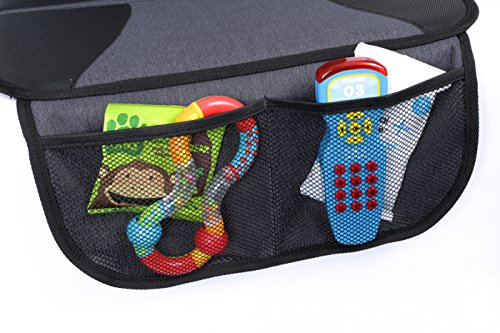 VERSATILE & LONG LASTING - The Car Seat Protector folds down to enable it to be used with rear or front facing Child Seats. Also works with high back booster seats It boasts a universal design to fit most vehicles and is suitable for all car seat colours, styles and types. Includes large mesh pocket to keep car tidy and your child safe.