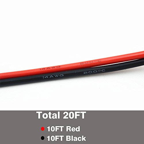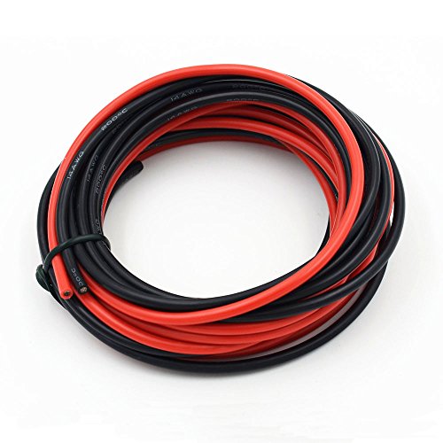 Electrical Wire 14 AWG 14 Gauge Silicone Wire Hook Up wire Cable 20 Feet [10 ft Black And 10 ft Red] Soft and Flexible 400 Strands 0.08 mm of Tinned copper wire High temperature resistance (14AWG)