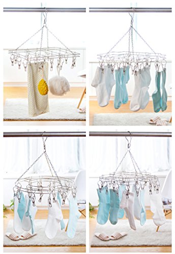 - Multiple uses: fit all kinds of cloth, both for indoor and outdoor use. It is designed for both hand washing and machine washing items, such as delicates, baby clothing, sports bras, compression shorts, leggings, garters, socks, scarves, hat, ties, handkerchief, sweaters, towel, glove etc. Easy to hang it on closets, shower curtain rod, laundry room, outside clothesline etc. Compact size is also portable during trave