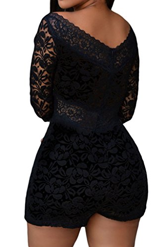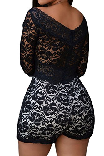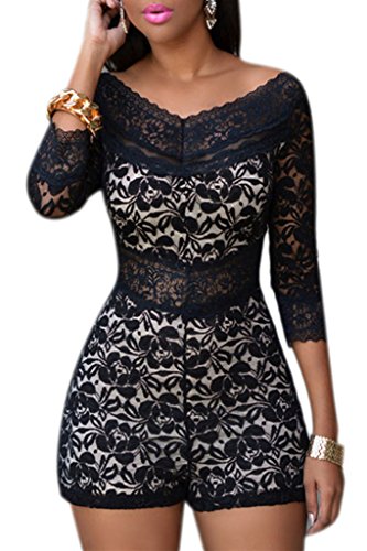 Binding : Apparel Product Description Detail ??? Opt for a modern evening-out look with this luxe crepe-knit lace romper. The overlay design and modern slit neckline make it a statement-making yet easy-to-wear essential. Featuring curved off-the-shoulder neckline, 3/4 sheer sleeves, floral lace bodice with soft lining partially. Sheer sleeves and wide v neck add much feminine allure. Center back zipper finished. 0
