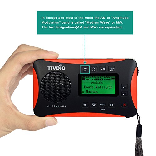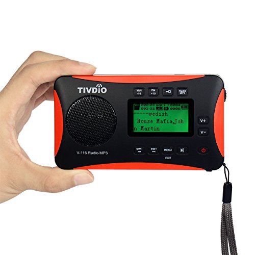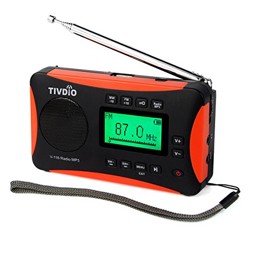 TIVDIO V-116 Portable DSP Shortwave Transistor Radio with AM FM Micro-SD Card AUX Input MP3 Player Speaker Alarm Clock Sleep Timer(Black and Orange)