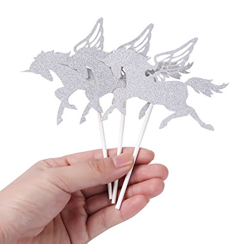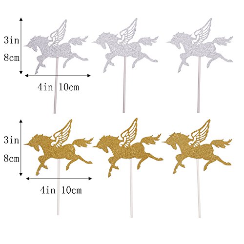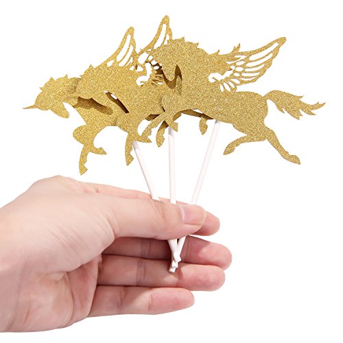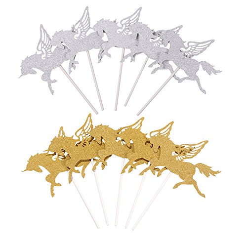 Partico 24 Pieces Unicorn Theme Glitter Cupcake Topper Cake Picks Decoration for Party Favors, Golden and Sliver Unicorn Food Picks