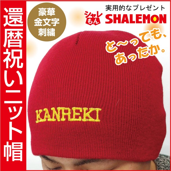 還暦祝い ワッチキャップ(ニット帽)です。伸縮性バツグンのフリーサイズです。