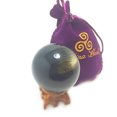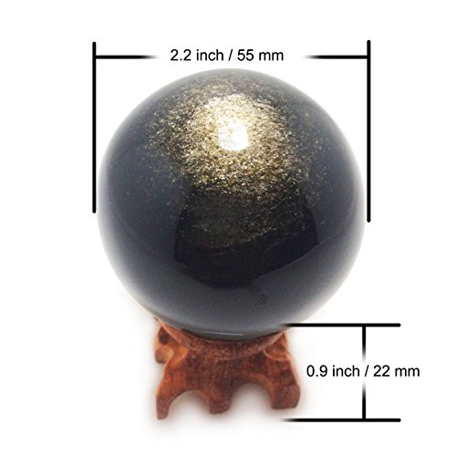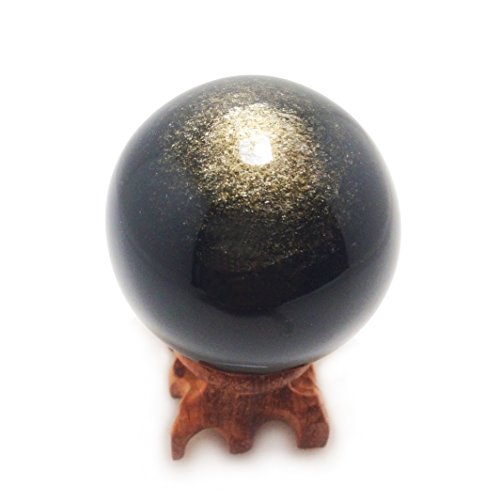 - Gold sheen obsidian crystal spheres, 55 mm / 2.2” diameter, Handmade from natural gold sheen obsidian mined in Mexico