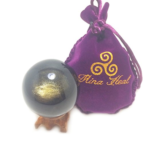 Golden Obsidian Crystal Spheres, 55mm / 2.2” Diameter, Rare Protective Stone Balls for Decoration, Healing, Meditation, Feng Shui, Hand-made