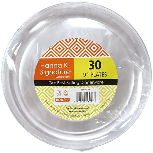 Premium Quality Heavyweight Plastic Plates, Wedding and Party Dinnerware Plastic Plates, 9 inch, Crystal Clear - Value Pack 30 Count