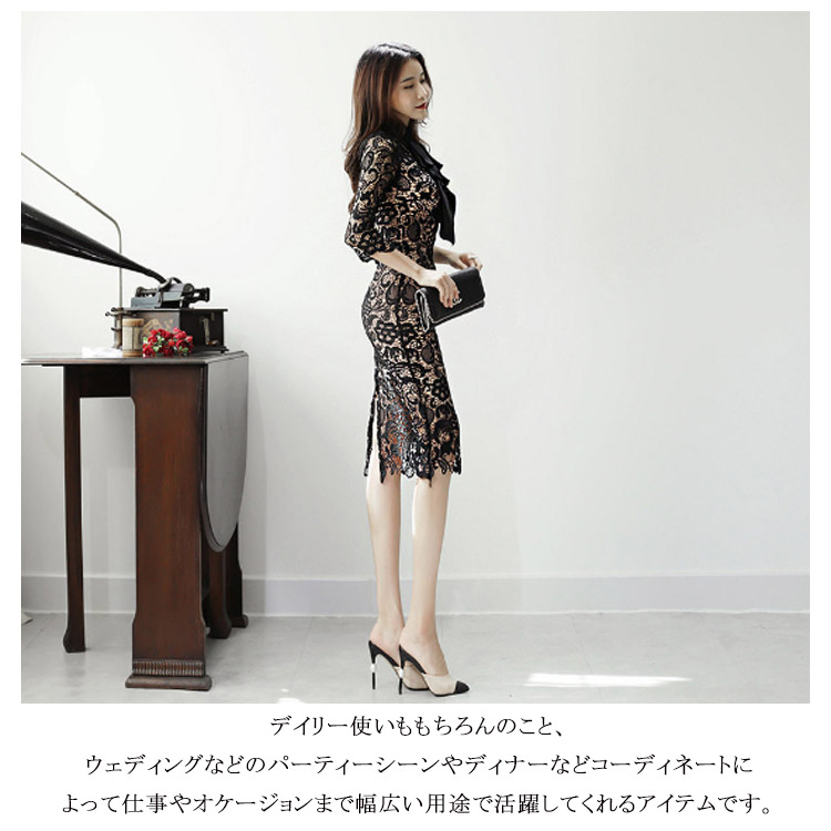 | フェミニンさと上品な印象を兼ね備えたワンピースです。レースから覗く肌がヘルシーな色気をプラス、露出を控えながら羽織りいらずで1枚で様になります。ぴったりとしたシルエットがボディラインをすっきりと見せ、フェミニンなスタイルを叶えます。デイリー使いももちろんのこと、ウェディングなどのパーティーシーンやディナーなどコーディネートによって仕事やオケージョンまで幅広い用途で活躍してくれるアイテムです。 | |