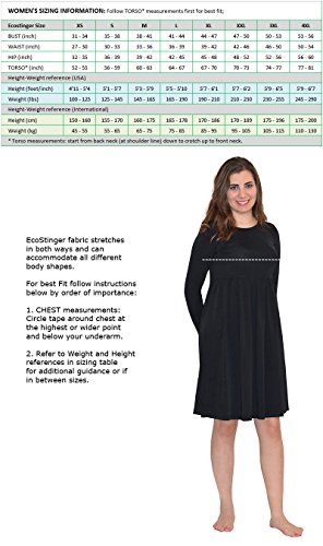 Binding : Misc. Product Description Don a lively look by wearing this Sun protective Dress with Long Sleeves and make a striking fashion statement. Fashioned with the assurance of providing extreme sun-protection, this dress has been made from fine-quality fabric for full-day comfort. It can be paired with shorts or tights if you wish to use it as a long shirt for beach activities. Ranks High On Comfort Designed with the promise to wade off the harmful effects of jellyfish stingers and sea lice while taking a dip in the ocean, this dress acts as an essential part of your beach wardrobe. It can also withstand chlorinated water of the pool owing to its chlorine-resistant attribute. Perfect For a Glamorous Beach Look This dress in black features a round-neckline and short sleeves that help to create an impressive design. A sleek lace surrounds the hems to add a chic update to this A-line dress. The natural waistline is followed by sleek pleats on the skirt to enhance its wearable ease. It can be worn for water fitness activities with great ease. Lightweight stretch fabric, keeping skin cool even in hot weather conditions - UPF50 sun protection blocking >97.5% of the sun UV radiation - Offers a comfortable fit and soft silky touch on skin - Can be matched with shorts, full legging tights and capri pants - Round neck, long sleeves - Chlorine Resistant - Can be worn over shorts or full leggings for extra cover. 0
