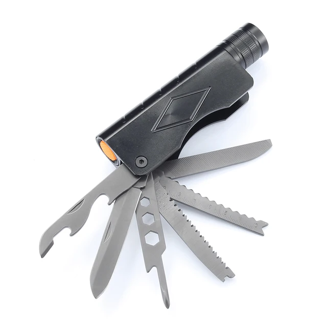 사양소재:알루미늄 합금켜고 :(/오프 모드 선택)모드: 3 (강한 빛, 약한 빛, 플래시 빛)방수: 예전원: 1X18650 배터리 (포함하지!)크기: 12.4 센치메터 * 4.1 센치메터 * 2.3 센치메터길이: 9 센치메터길이 블레이드: 7 센치메터적합: 캠핑 승마, 야외 등반 등