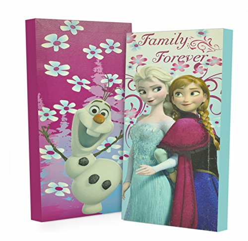 The Disney Frozen 2 Pack Canvas Wall Art will add to the decor of any child's room. Each panel features unique designs of his or her Frozen character. Both pieces can be part of a collection or stand alone. The Glow in the Dark wall art will illuminate bedtime and create a beautiful illusion. The set includes two canvas panels measuring 7" W x 14" H each.Feature