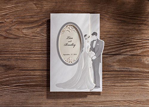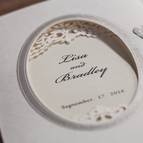 Wishmade 50x Luxury Trifold Wedding Invitations Cards Kits with Embossed Bride and Groom Paper Cardstock for Bridal Shower Engagement Party(set of 50pcs)