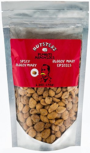 Nutsterz Spicy Bloody Mary Peanuts – Get wasted in flavor with the taste of spicy Bloody Mary seasoning, sea salt, sugar, Tabasco sauce powder, and eclectic spice mix and canola oil. Hot! Hot! Ho
