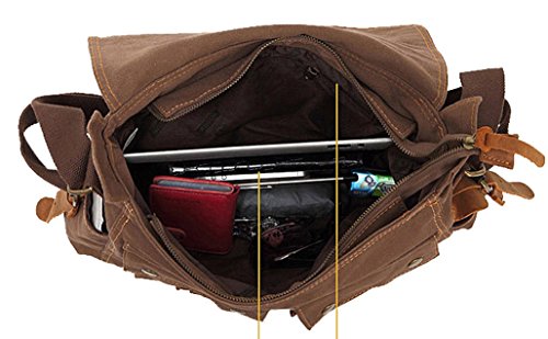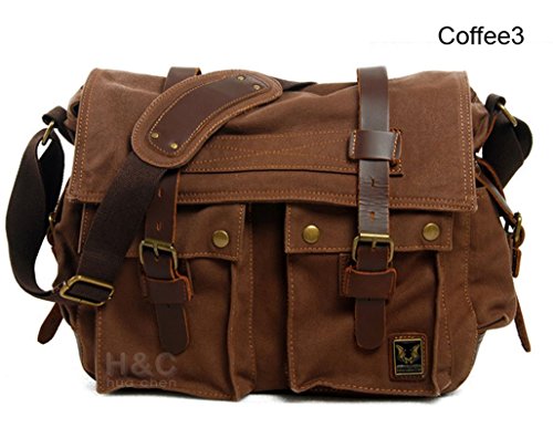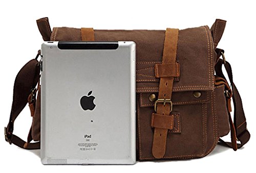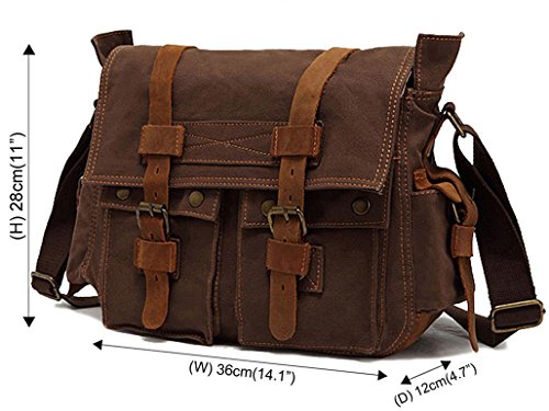 -. Binding : Electronics -. Brand : Unbranded* -. Color : As picture shows -. EAN : 0799562735122 -. Feature : 100% Brand New / Made of canvas and leather / Adjustable straps and magnetic locks / arrying your stuff on-the-go couldn't be easier with this vintage style canvas and leather messenger bag / Dimensions: 13in x 10in x 4in -. Label : China -. Manufacturer : China -. PackageQuantity : 1 -. ProductGroup : PC Accessory -. ProductTypeName : CARRYING_CASE_OR_BAG -. Publisher : China -. Studio : China -. Title : Men's Military Canvas Leather Satchel School 14" Laptop Shoulder Messenger Bag -. UPC : 799562735122