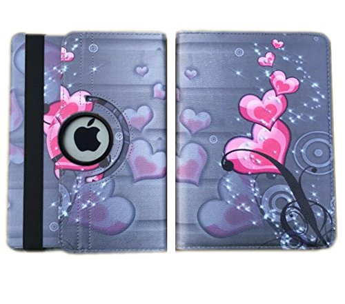 IPad Case Cover Rotating Stand Auto Wake Up / Sleep Function For ipad Mini 1st , 2nd , 3rd Generation Compatible models; MD531LL/A , MD529LL/A or A1432 (Pink Heart Flower Design)