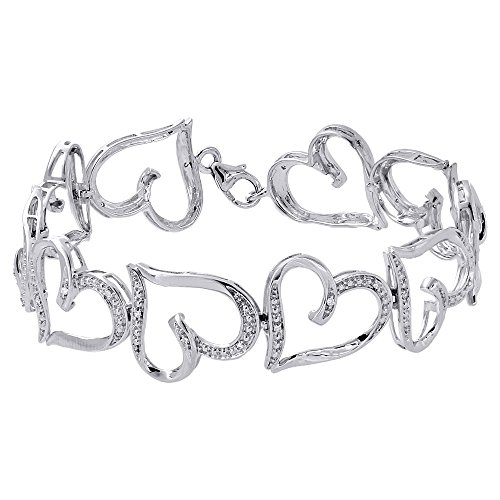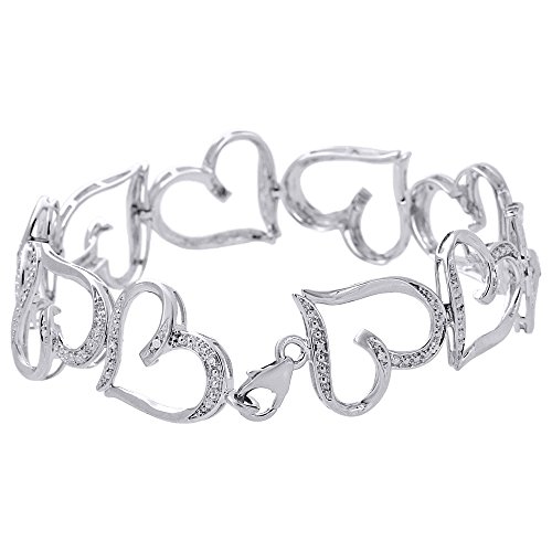 -. Binding : Jewelry -. Brand : Jewelry For Less ATL -. Department : womens -. Feature : Ladies Gold Diamond Bracelet. Item in image is smaller than it appears. It is enlarged to show details. Picture on hand will give a very good idea of true size. / 10K White Gold, I2 - I3 Clarity, I - J Color, Approximately 8.5 grams / Round Cut with Shared Prong Setting / Lobster Claw Clasp / Comes with Appraisal Certificate (insurance purpose) and Gift Box, 100% satisfaction guaranteed. 30 Day Returns. -. Label : Jewelry For Less ATL -. Manufacturer : Jewelry For Less ATL -. Model : BR1123/W -. MPN : BR1123/W -. PartNumber : BR1123/W -. ProductGroup : Jewelry -. ProductTypeName : FASHIONNECKLACEBRACELETANKLET -. Publisher : Jewelry For Less ATL -. Studio : Jewelry For Less ATL -. Title : 10K White Gold Round Cut Diamond Heart Link Ladies Tennis Link Bracelet 7" 1/8 Cttw
