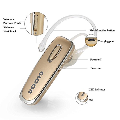 GLCON® GJ-02 Gold Stereo wireless bluetooth 4.0 BT [headset headphone earphone earbud earpiece], with A2DP, Music Streaming Dual Pairing, Noise Cancellation, Echo Cancellation, microphone mic and slave earbud for Apple iphone 6/6 plus/5/5S/5C, iphone