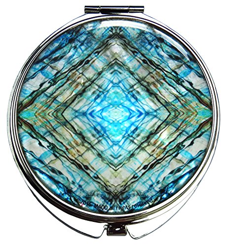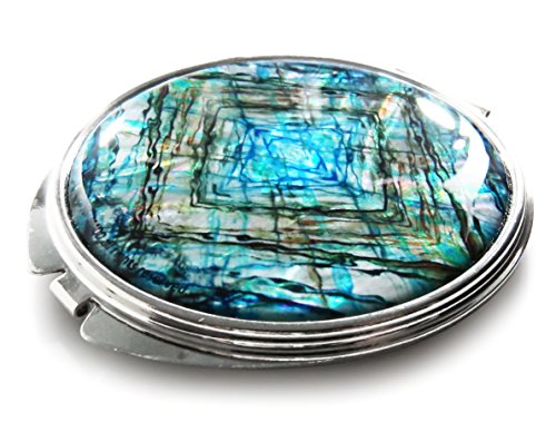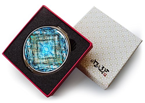 Makeup Mirror Mother of Pearl Metal Dual Compact Folding Magnify Marble (Blue)