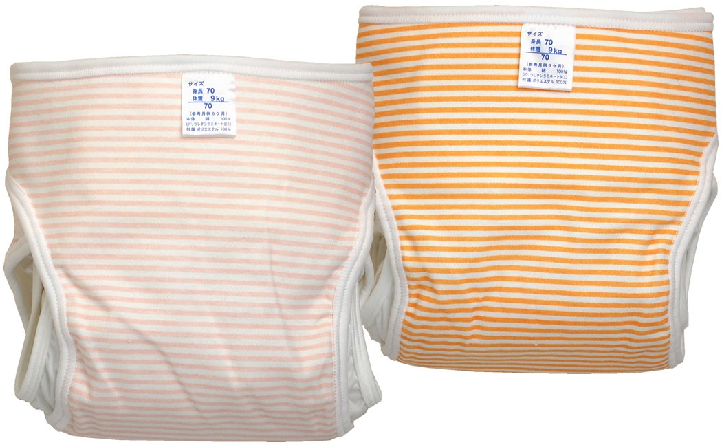 Murashin made in Japan 2 Disc Striped cotton diaper cover (behind closing) 80cm Pink JF202B
