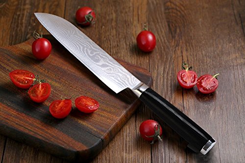 Cerdeco cerdeco 7인치 다마스커스3 덕 부엌칼 나이프 (후루타구)67 층다마스커스 블레이드Micarta핸들 프로패셔널 키친 부엌칼 나이프