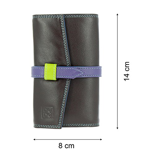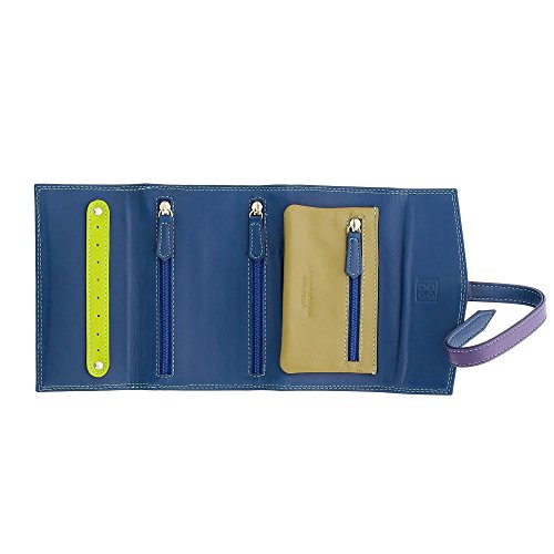 Brand:?DuDu® Material:?Calfskin Nappa leather full grain Dimension (refer when wallet is closed):?8 x 14 x 2,8 cm Weight:?100 g Box:?Included Type:?Ladies Composition:?3 inner pockets with zip and 8 holes for earrings Available colors: Black, Fuchsia, Blue, Woods. All multicolour