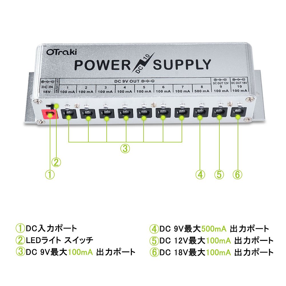 DC output 10 jack: DC 18V 100mA guitar effects can be connected