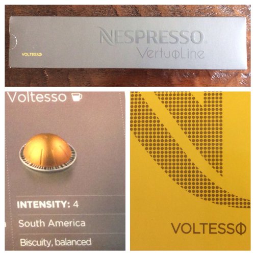 Studio : Nespresso Publisher : Nespresso Binding : Misc. Product Description Voltesso. 10 capsules of roast and ground coffee for the NESPRESSO VertuoLine system. Lightly roasted, Voltesso is a balanced, round coffee that reveals biscuity notes and pronounces a distinctly sweet aroma thanks to its South American Arabicas. For an even smoother result, blend Voltesso with milk for a delicious new take on this espresso. Intensity 4 0