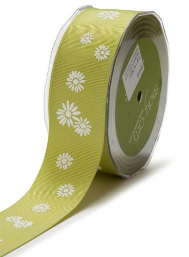 May Arts 1-1/2-Inch Wide Ribbon, Celery Grosgrain Daisies