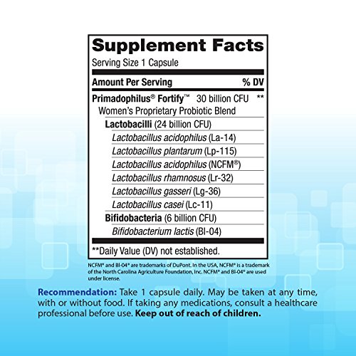 A PROBIOTIC FORMULATED FOR WOMEN: Primadophilus Fortify Women's probiotic is formulated with a higher ratio of Lactobacilli to help support women's health. This product contains 24 billion Lactobacilli to support women's health and 6 billion bifidobacteria to support your colon.*