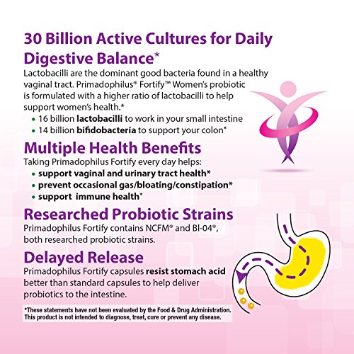30 BILLION ACTIVE PROBIOTIC CULTURES: Taking Primadophilus Fortify Women's probiotic every day helps support urinary tract health, prevent occasional gas, bloating and constipation, and support immune health.*