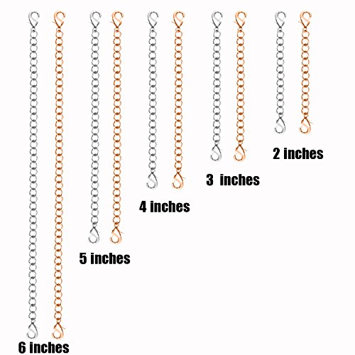 Classic lobster claw clasps, easy to put on or take off; Convenient to use, simply clasp on both ends of the extensions to your favorite jewelry