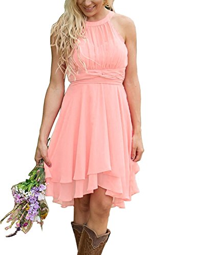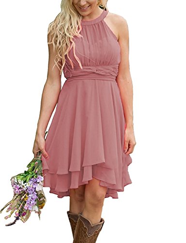 Halter,Ruched,Sleeveless,Chiffon,Knee Length