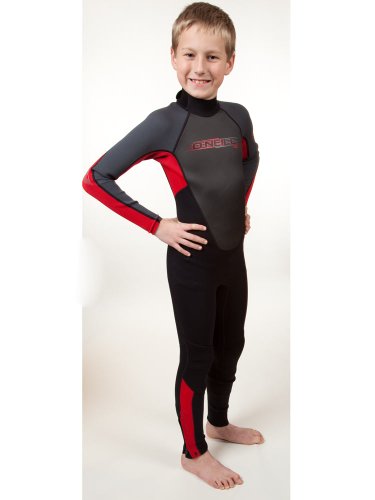 O'Neill Wetsuits Youth 3/2 mm Reactor Full Suit, Black/Red/Graphtron, 4