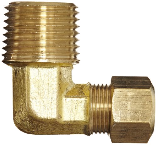 Anderson Metals 50069 Brass Compression Tube Fitting, 90 Degree Elbow, 3/8" Tube OD x 1/2" NPT Male Pipe