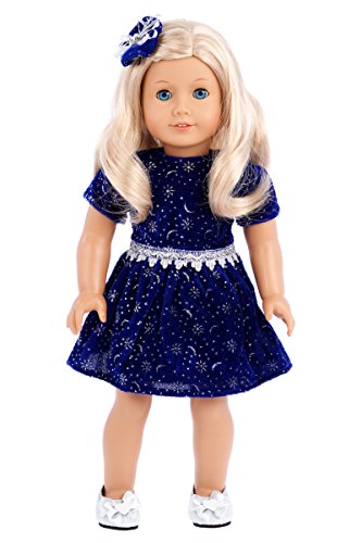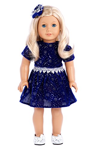 (DreamWorld Collections)/Dolls/Clothing Shoes/DIRECT FROM USA/Midnight Blue - 3 piece outfit - Dark blue sparkling holiday dress with matching silver shoes a...