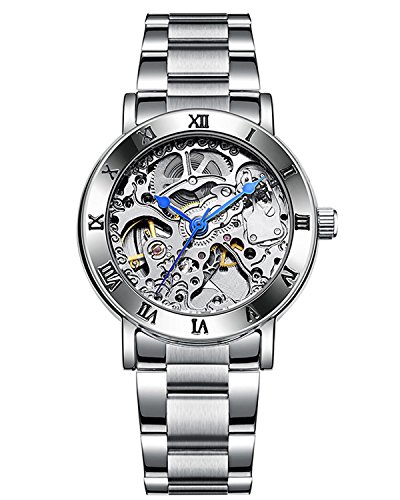 ★Creative design of Perfect Full Skeleton Dial with Blue hands,the Roman numerals on the watch bezel play a guiding role of hour markers