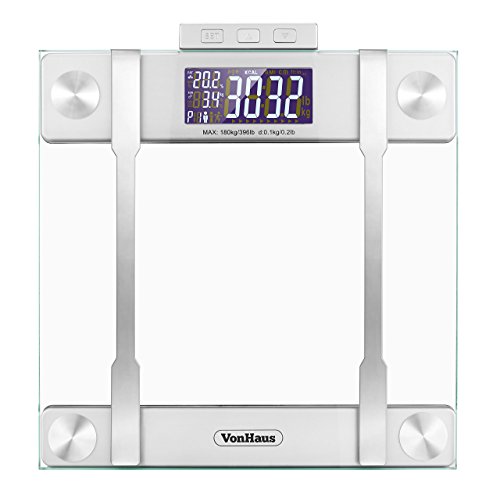VonHaus Body Fat Scale - BMI Weight Scale with Body Composition Analyser, Hydration Monitor, 400lb Weight Capacity, Silver/Glass Bathroom Weight Scales