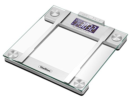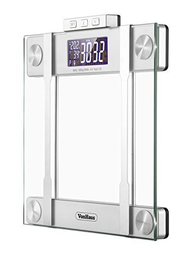 The VonHaus body fat scales measure body fat % and water % by BIA (Bioelectrical Impedance Analysis). You can also measure your weight; hydration %, muscle % and bone %