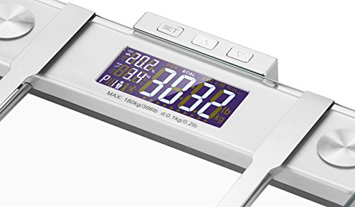The bathroom scales also assist with diet by calculating the calories needed per day to achieve your goals.