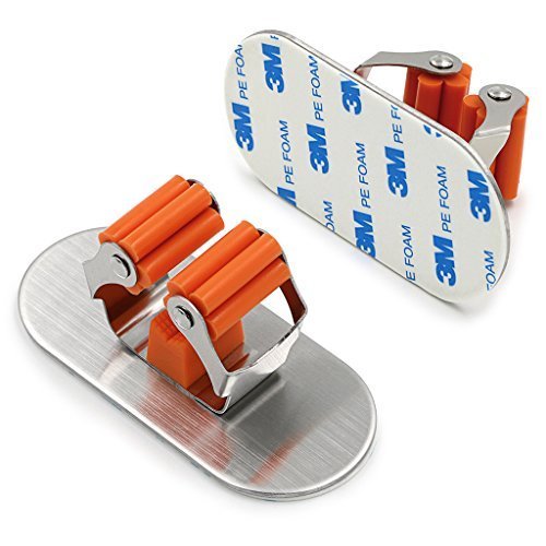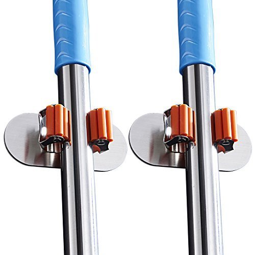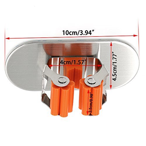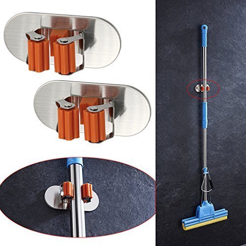 Innovative design with dual way,this superb Wall Mounted mop broom holder can help to beautify your living spaces to create a warmer, welcoming environment.No more messy closet or loose items laying around. The Multipurpose Organizer / Holder is light weight,With an unmatched performance adhesion to vast majority of surfaces. This product is easily installed on walls, doors, wooden and metal surfaces.Brooms, mops, shovels, rakes,canes, hammers, axes, rackets, golf clubs and many more items can be efficiently stored for optimal use of your space.The options are only limited by your imagination! So beautiful and practical home artifact,you must not to be missed such a good thing Specifications: Material : Stainless Steel Plastic Self-Adhesive : by 3M Finish : Brushed Finish Installation Instructions: ①.Clean the surface of the object to be pasted hanging tool. ②.Remove the rack back protective film ③.The hanging pressed paste in the desired position. ④.Recommendation 24 hours after the hanging objects use Package Includes: 2pcs Broom Mop Holder 0