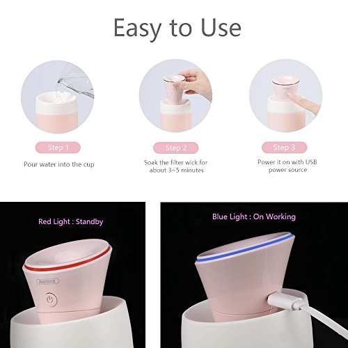 Remax Cool Mist Humidifier Auto Shut-off, Mini Humidifier Whisper-quiet, Ultrasonic Cool Air Humidifiers for Babies, USB Powered Humidifiers for Bedroom-pink