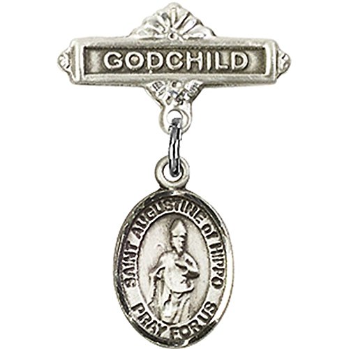 -. Title : Sterling Silver Baby Badge with St. Augustine of Hippo Charm and Godchild Badge Pin 1 X 5/8 inches
