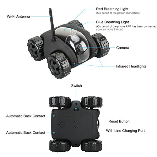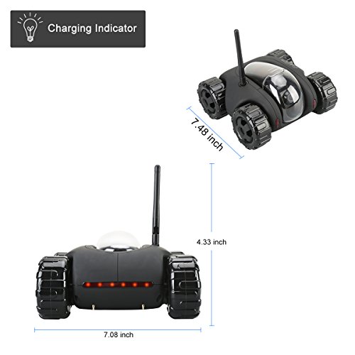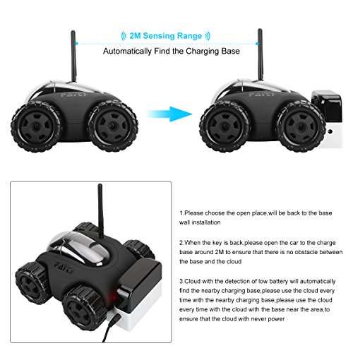 FAITH CLOUD ROVER IV Cloud Companion RC Car Wi-Fi P2P Remote Control 1.3MP 720P HD Baby Monitor SPY Tank Car APP Control Movement Motion IP Camera Home Remote Camera with Charging Dock (Black)