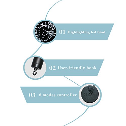 -. Feature : [Convenient&Safe Decoration] The nifty twinkle string lights and the small waterproof battery box operated with hook is easily carry and place the lights anywhere you like. Great for birthdays, weddings, dinner party, girl's night in bedrooms, garden and more! These lights create amazing atmosphere during Halloween, Easter and Christmas holidays. The best and amazing decor for any occasion even in rain. / [Multiple Display Modes] 8 modes options that two kinds of color flashing lights alternate twinkle in different kinds of attractive ways. The atmosphere can be easily controlled by yourself to make your place get beautiful and fantastic like a wonderland. Add luster to your party and carnival. Leave the creating romantic atmosphere task to me, what you should do is just having fun with families, friends and guys. / [Remarkable Quality&Design] Superior quality and flexible Copper wire Can be easily designed into any DIY shape you want. The small battery power and slim copper wire can be Easily hid and hang in branches, balconies, and garlands to scatter stars around the home or brighten garden parties and walkways. Just make any occasion or space extra special with these bright starry night twinkle fairy lights! / [Special Timing Function&User Friendly] The waterproof battery power have special timing function that 6 hours of light and 18 hours off with memory function. Continuous light on 6 hours a day for 30 days. No need to repetitive control, just hang the beautiful string lights at anywhere and enjoying the wonderful and amazing experience it takes to you. Really convenient and saving your invaluable time. / [Energy Conservation & Environmental Protection] The LED lights are really very energy efficient. worked magic for your party and carnival. Amazingly bright at long battery life. Let us together to contribute to saving the resource and environment. The string and battery operated box are IP44 waterproof level, which allows you to use it in outdoors even in drizzling rain and slight snow.
